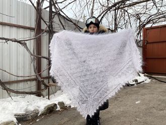 Пуховый платок п191 размер 130*130 4500 руб. В корзину ❗️❗️❗️Теплый ажурный белый пушистый платок из козьего пуха ! В подарок при заказе платочка варежки или носочки в ПОДАРОК ❗️❗️❗️